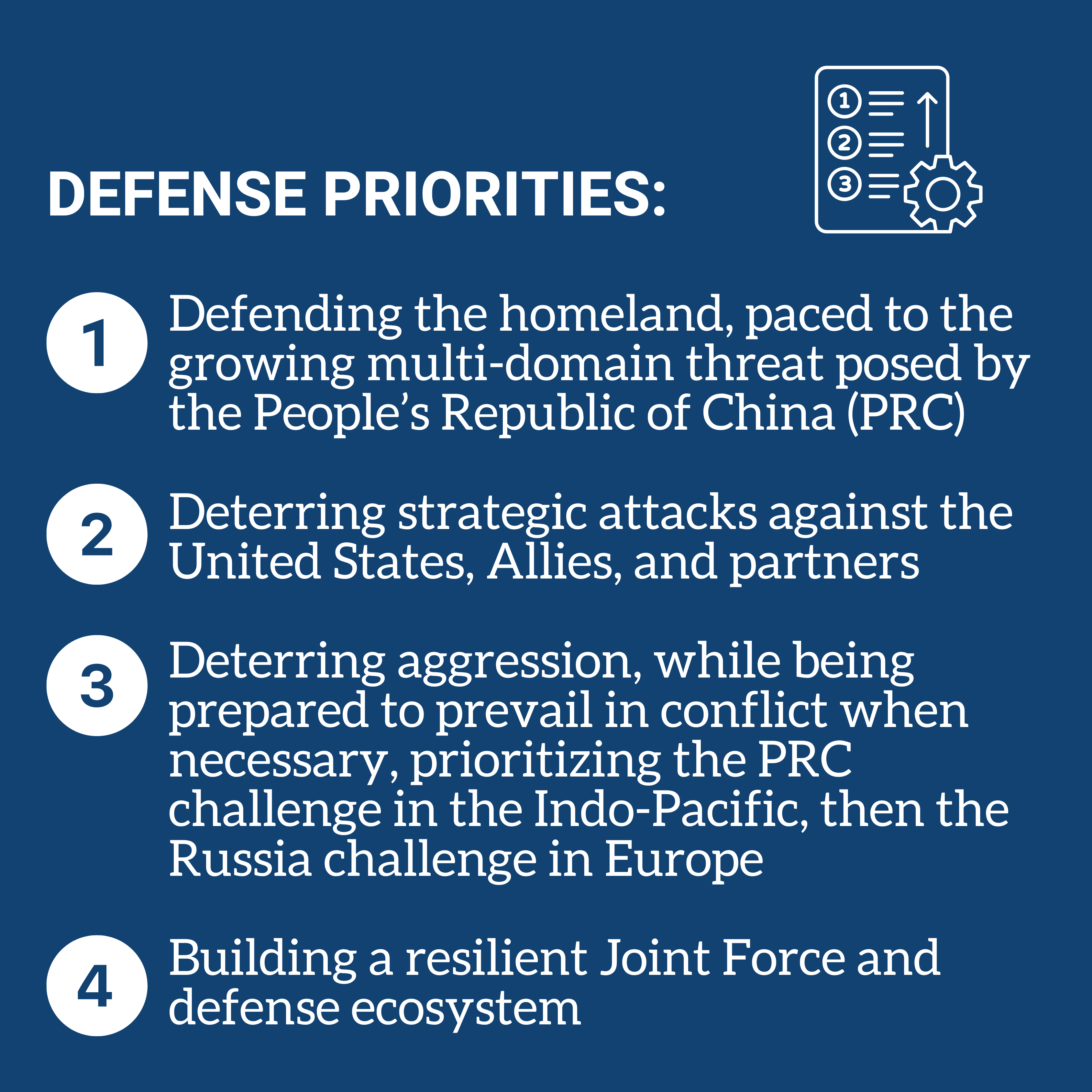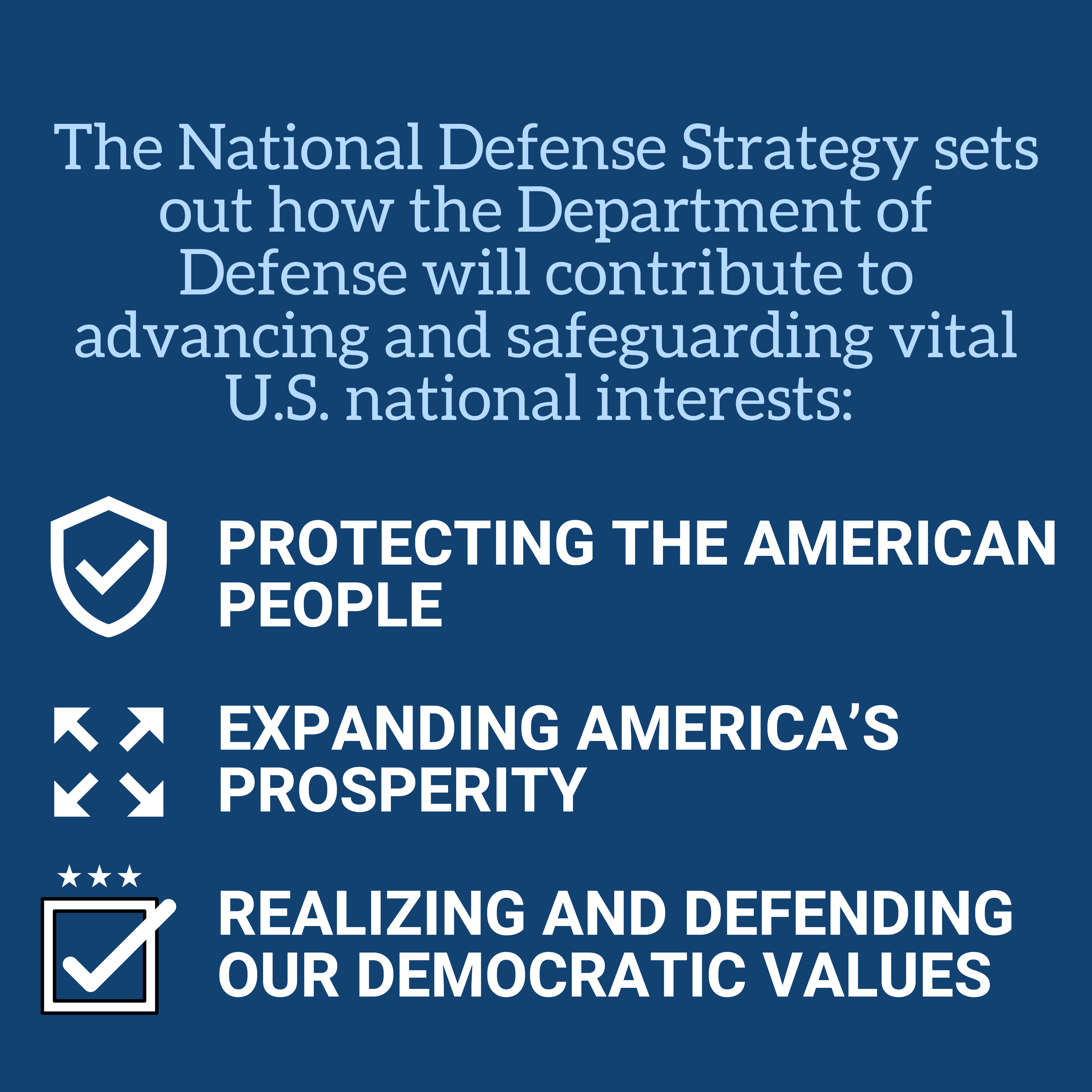 On October 27, 2022, the Department of Defense publicly released the unclassified National Defense Strategy (NDS), a Congressionally mandated review. This strategy sets the strategic direction of the Department to support U.S. national security priorities and flows directly from the National Security Strategy.