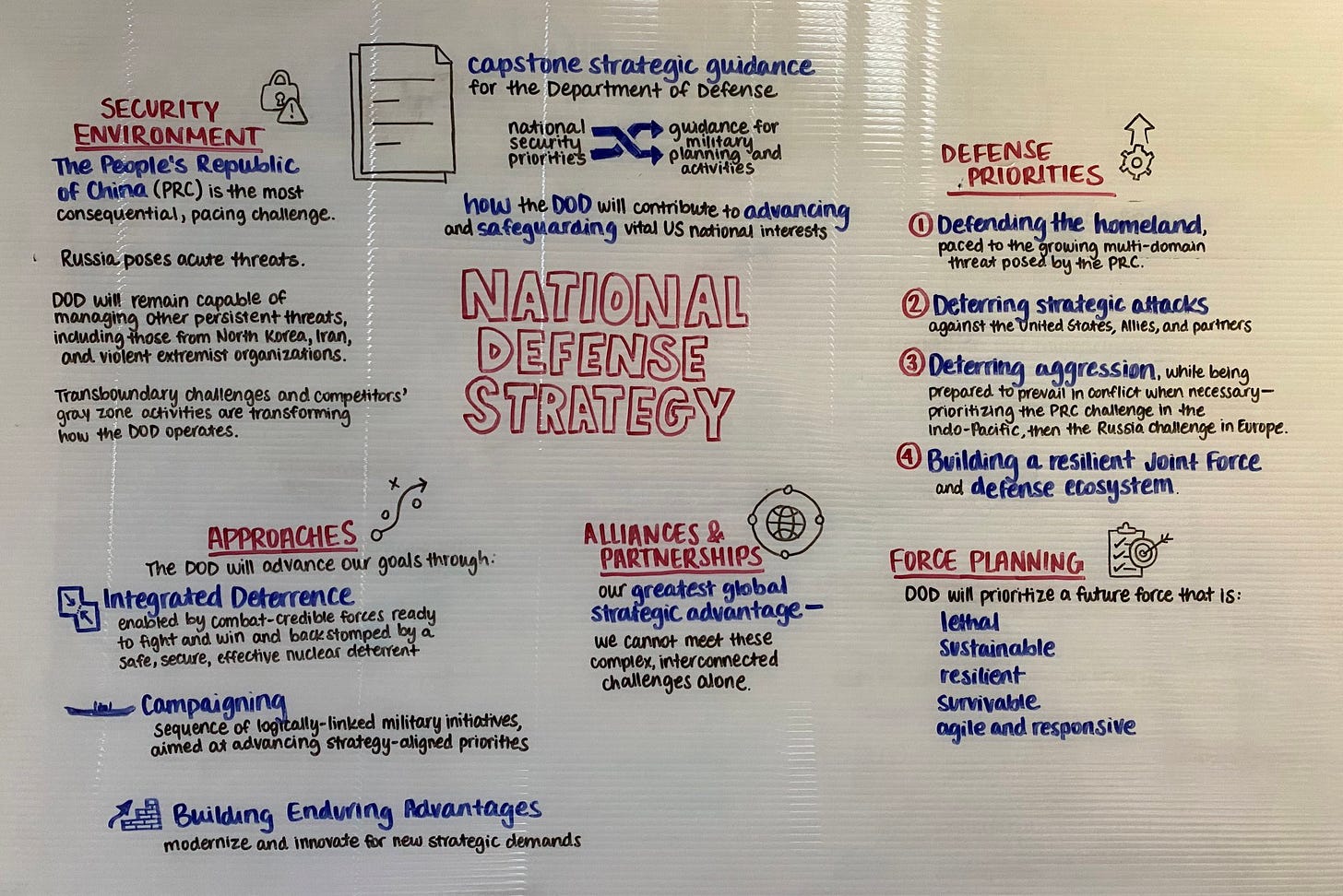 This article on the 2022 National Defense Strategy started as a whiteboard in my office. My original breakdown is depicted below.
