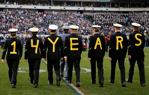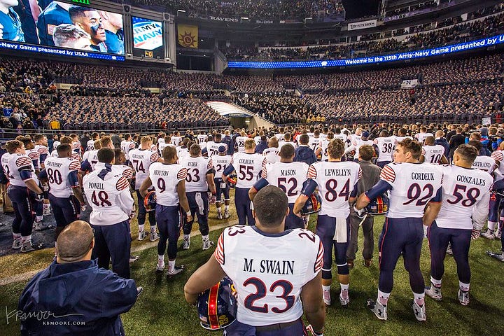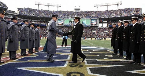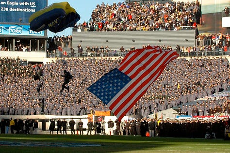 The Army-Navy Game is the only game where every player on the field is willing to lay down their life for everyone in the stands.